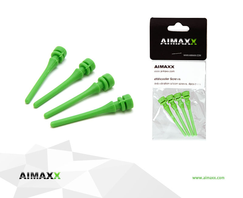 Silence is one of the most important considered features, while choosing your PC parts. Antivibration silicone screws are the simplest thing you can do to reduce the useless noise without any impact on the performance. Set of 4 pcs of Professional antivibration mounting screws AIMAXX is suitable for "open" fans. Screws are made of durable silicone material and it is also important for the design fans, that the fans fits with its fresh green with AIMAXX fans.